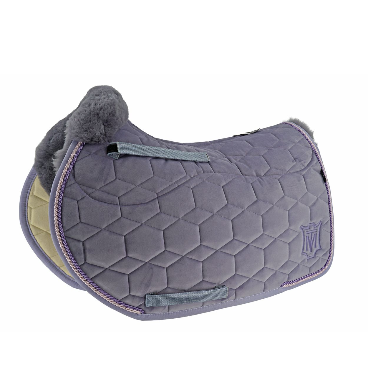 Lammfellschabracke in bewährter MATTES Qualität. Formstabiler Samt, Lammfell im Sattelsitzbereich - Komfort für dein Pferd. Lammfell sorgt für eine gute Druckverteilung, reduziert Reibung und ist temperaturausgleichend. Einfache Pflege in der Waschmaschine.